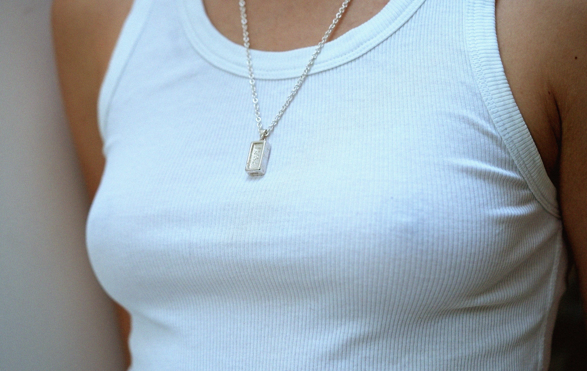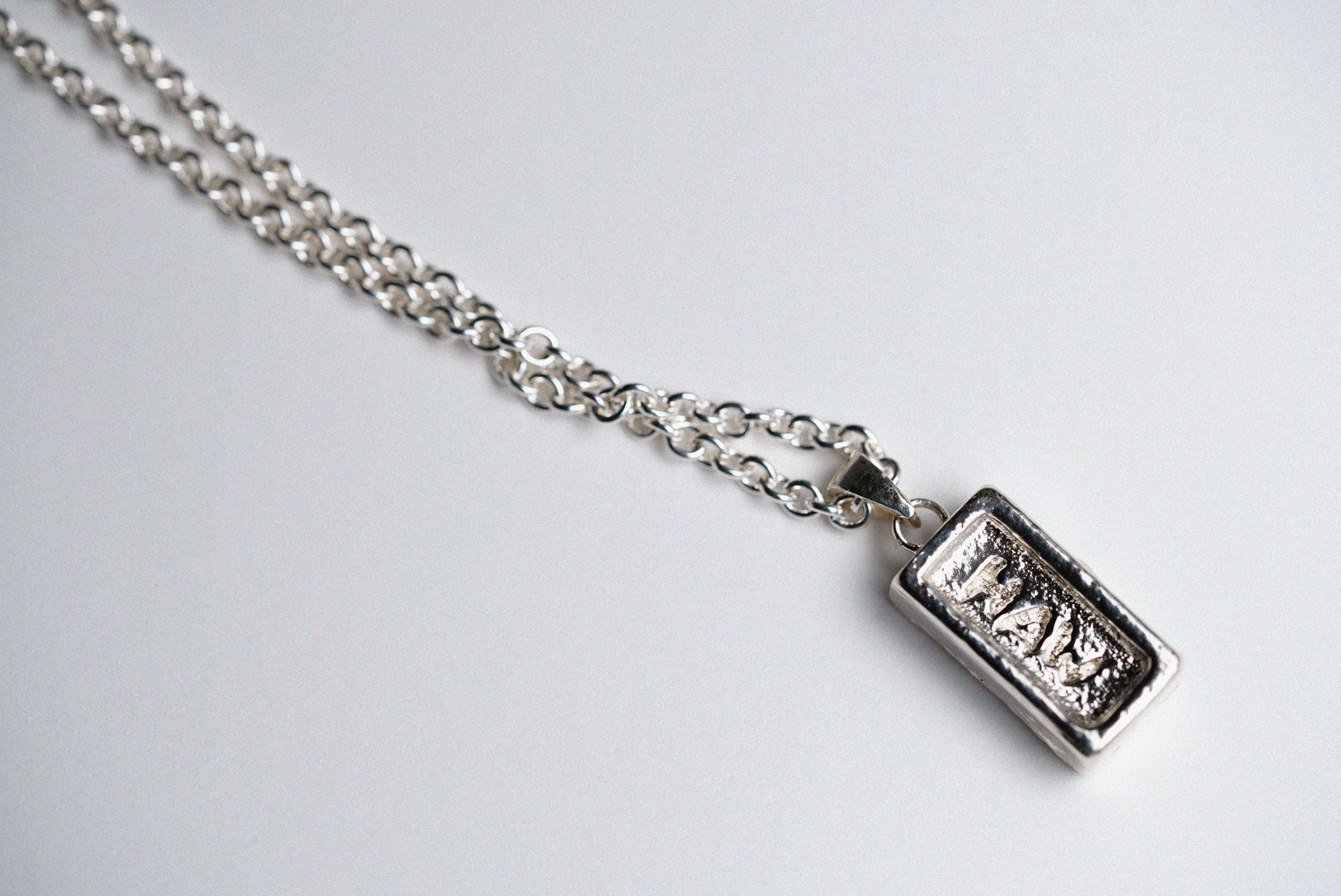 This necklace was hand carved and engraved in wax before being cast in sterling silver. In the casting process we mixed the brick from our home with the sand to create the same texture. Each piece has been polished and worked by hand, valuing each unique detail, therefore it may contain imperfections and particularities that make this piece unrepeatable, please bear this in mind before ordering.