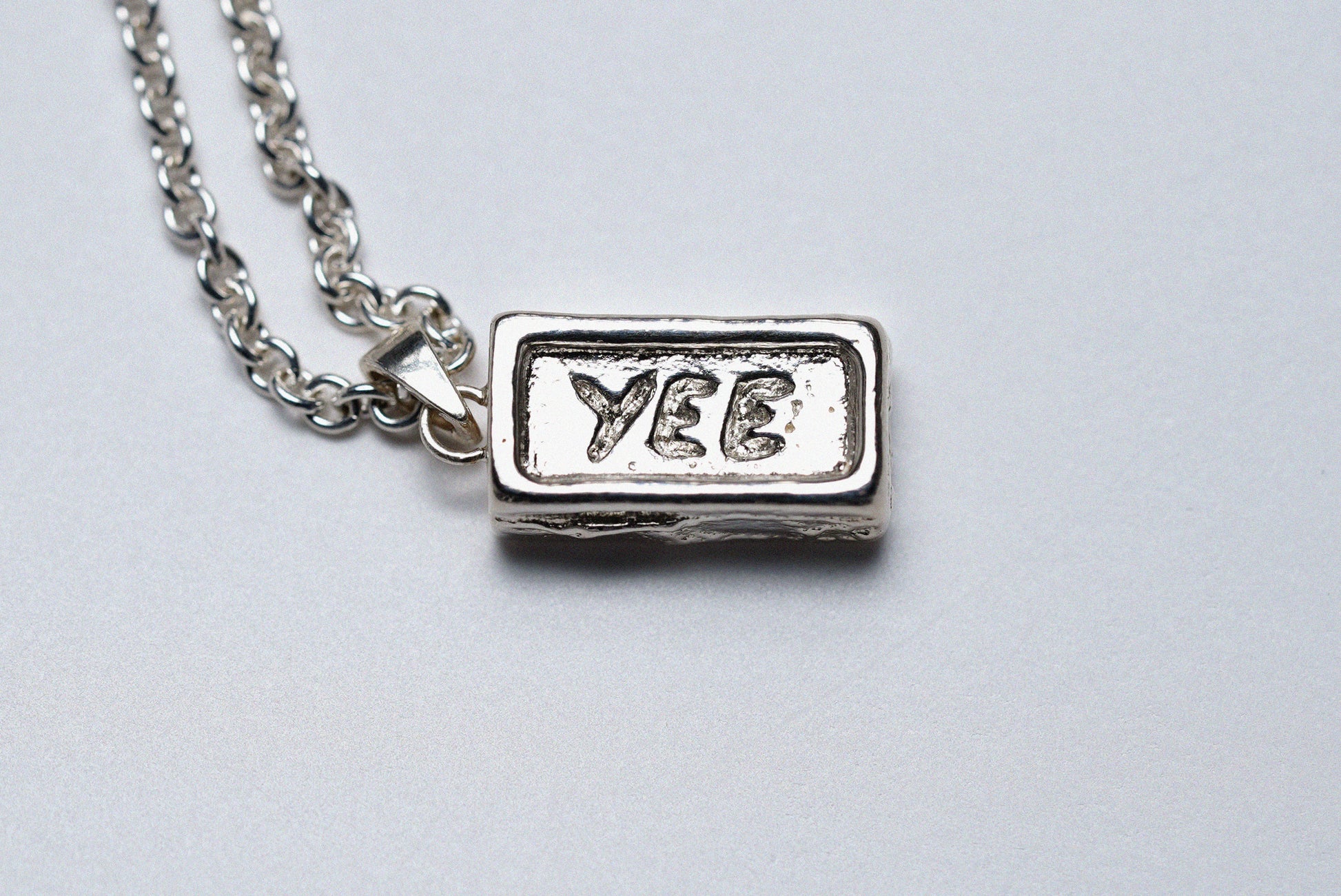 The Yeehaw brick pendant comes with a silver chain and the texture on the pendant comes from the bricks that we used to build our house! … don’t ask us how, just know some bricks aren’t here with us anymore.